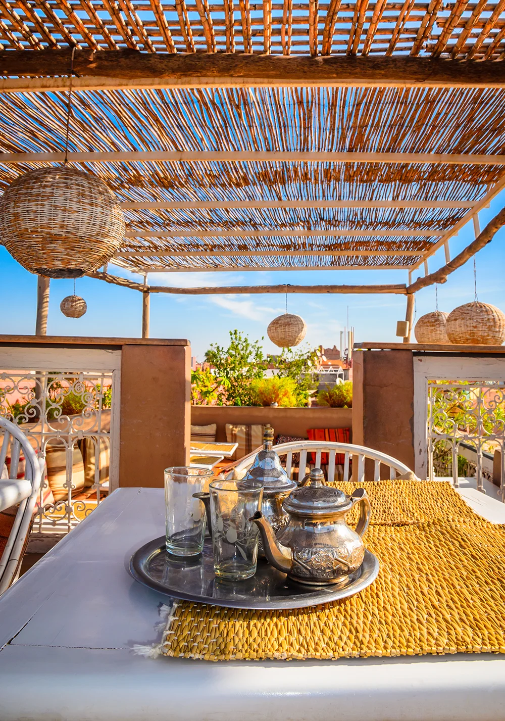 El día está dedicado a descubrir la medina de Marrakech desde dentro. En grupos reducidos, guiados por locales, exploramos los gremios tradicionales: la lámpara mágica de los orfebres, la baraka de los carpinteros, los secretos de los especieros y el arte de preparar un buen té en un riad escondido. Una experiencia única que conecta con el alma de la ciudad. Almorzamos en Al Baraka, en plena plaza Jemaa el Fna. Por la noche, cena festiva en Jad Mahal, el restaurante más vibrante del país, con música en vivo y ambiente nocturno. Última noche en Marrakech.